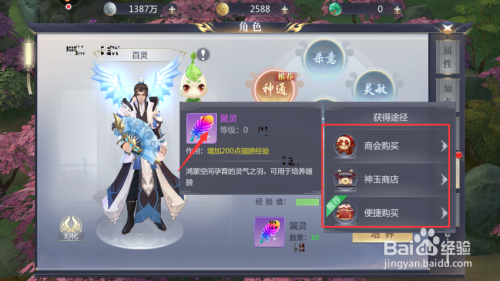 同党培育需要耗损翼灵,翼灵在商会、神玉商铺可以获取,如图所示。