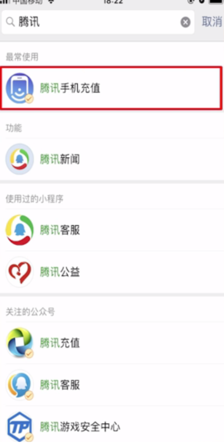 - 1登录“微信”,找到并打开“腾讯手机充值”。