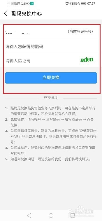 第五步若是想利用酷码兑换会员到其他账户,可以进行输入其他酷狗音乐账号,如下图所示: