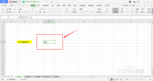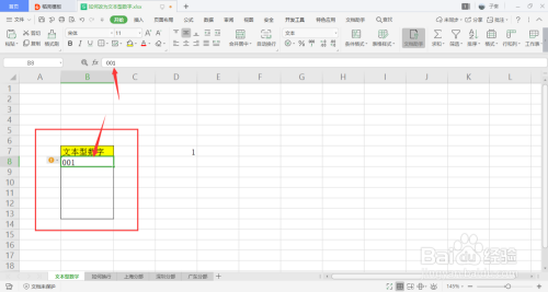 选中需要点窜的单位格,在开始菜单栏下,在这个下拉框中选择文本。