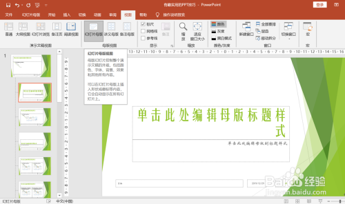 2)选择“幻灯片母版”