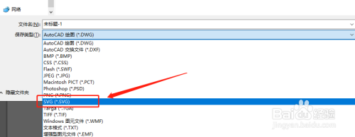 然后在弹出的对话框中选择文件格局为“SVG”然后点击“确定”(如图)。