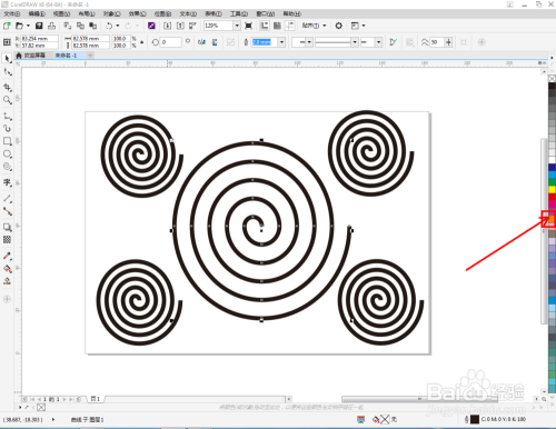 选中对称式螺纹图案,鼠标右键点击右边色板的中色块,将螺纹设置为我们需要的颜色即可。