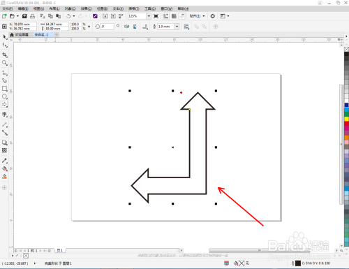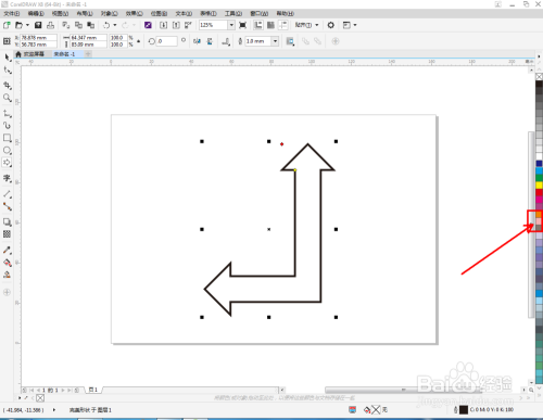 选中L字箭头图案,鼠标右键点击右边色板的中色块,将箭头设置为我们需要的颜色即可。
