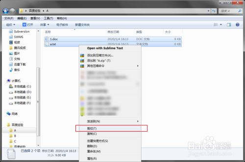 选中文件后,点击鼠标右键并点击【剪切】(或者按快捷键:Ctrl+X)
