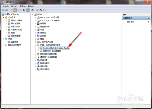 鼠标移动至办理栏中的系统东西,单击睁开系统东西,找到设备办理器并单击打开,在右侧找到声音、视频和游戏节制