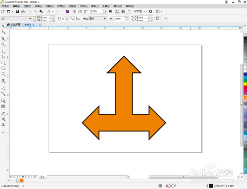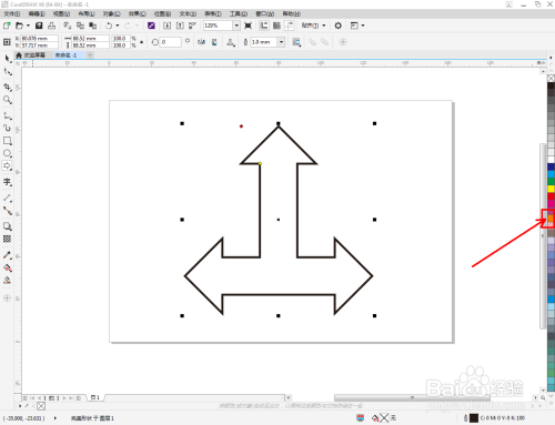 选中T字箭头图案,鼠标右键点击右边色板的中色块,将箭头设置为我们需要的颜色即可。