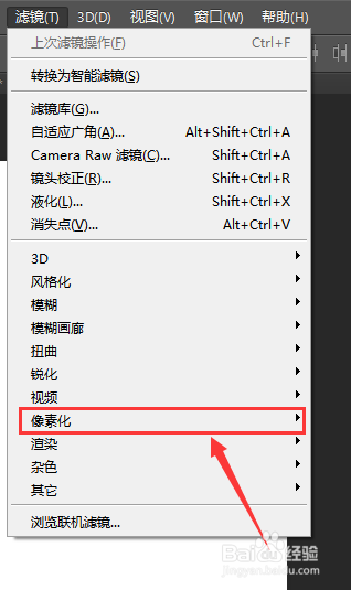 进入Photoshop后,点击右侧“滤镜”,如下图所示。
