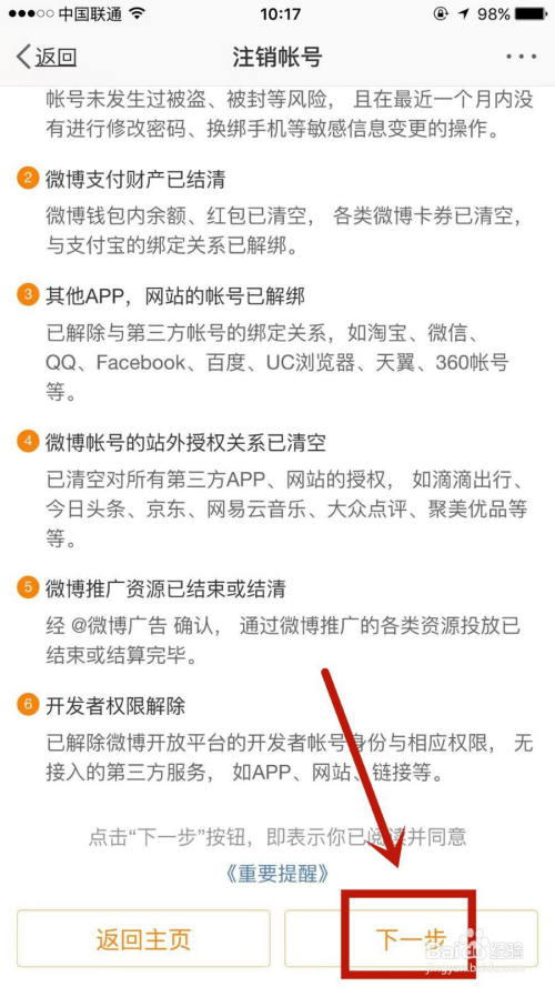 在刊出账户页面,下滑后点击右下角的下一步选项。