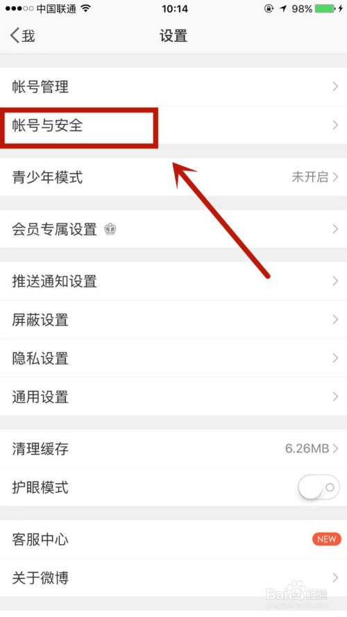 2.点击账号与平安,再点击微博平安中间选项。