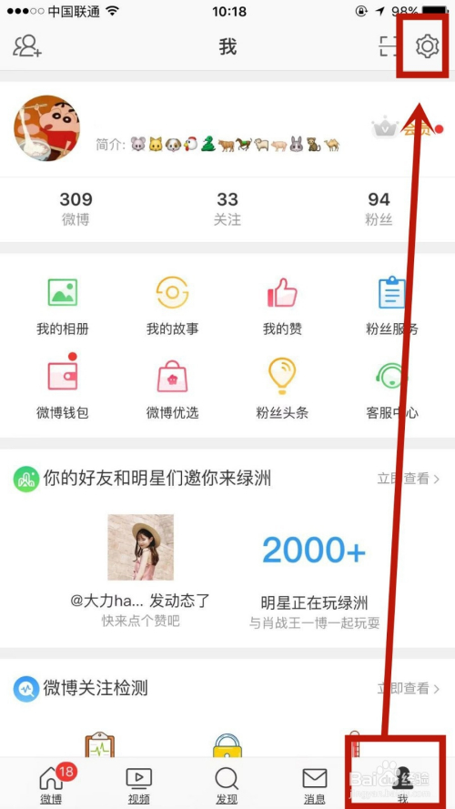 首先打开微博,点击右下角的我,再点击设置小标。