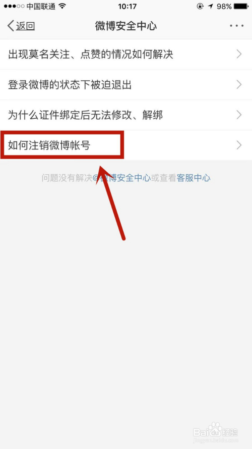 进入后,点击页面的如何刊出微博账号。