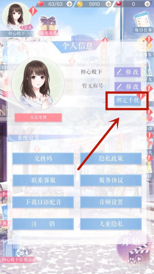 在页面中,点击绑定手机选项。