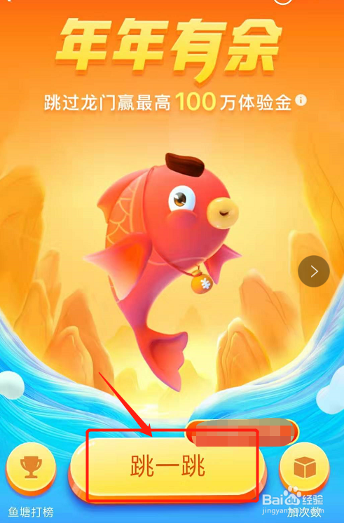 4、进入活动界面后,会获得三次鲤鱼跳龙门机遇,点击下方跳一跳,起头游戏。