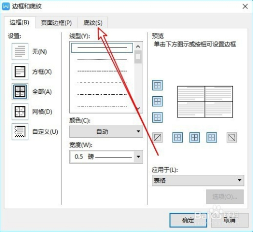 然后再打开的边框和底纹窗口,点击底纹的选项卡。