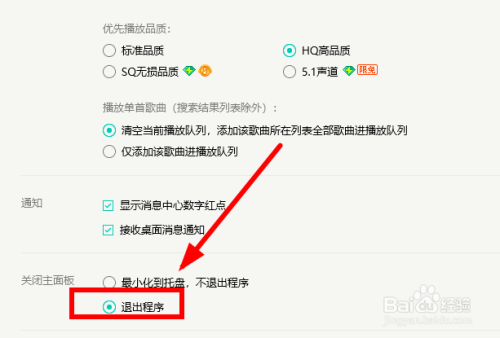 标的目的上滚动鼠标滚轮,找到【封闭本家儿面板】选项组,点击勾选下面的【退出程序】选项
