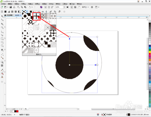 点击【交互式填充东西】-【双色图样填充】,点击【填充遴选器】,弹出填充遴选设置栏;