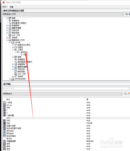 然后在CAD中打开自界说用户界面(快捷键"cui"),再打开局部自定文件,找到下面的东西栏,右击新建东西栏并定名为您想要的名字。