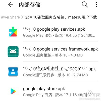 第一步、把“安卓10谷歌办事安装包.zip”解压后的APP安装文件拷贝到手机上面: