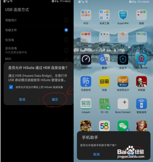 第二步:用USB毗连手机和电脑,HiSuite会主动启动,按提醒操作,直到手机毗连HiSuite当作功,如下图所示: