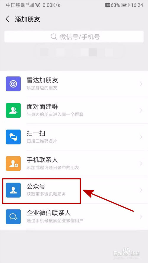 2、选择“公家号”,在搜刮栏里输入“当作长守护平台”,然后点击“存眷公家号”。