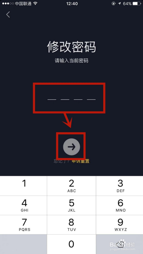 输入当前密码后点击箭头小标。