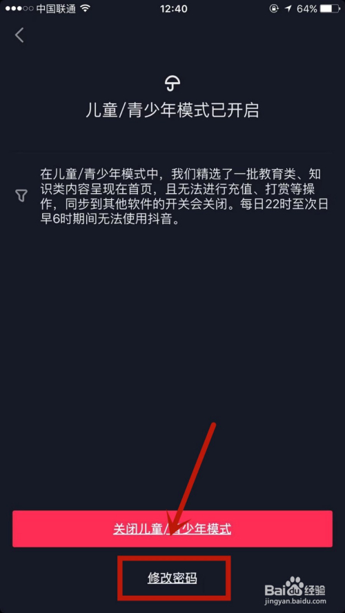 在未当作年庇护东西页面,点击进入儿童\青少年模式选项。