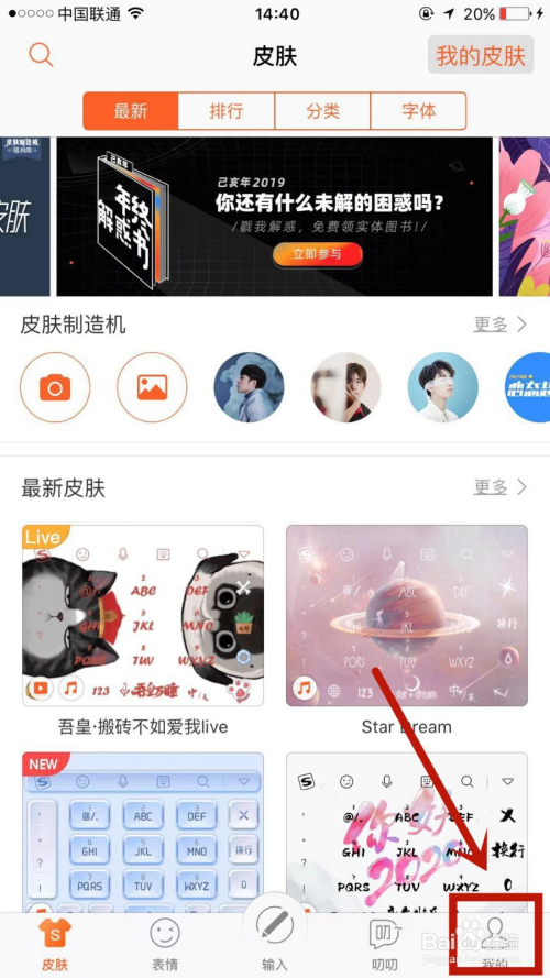 1.打开搜狗输入法,点击右下角的我的。