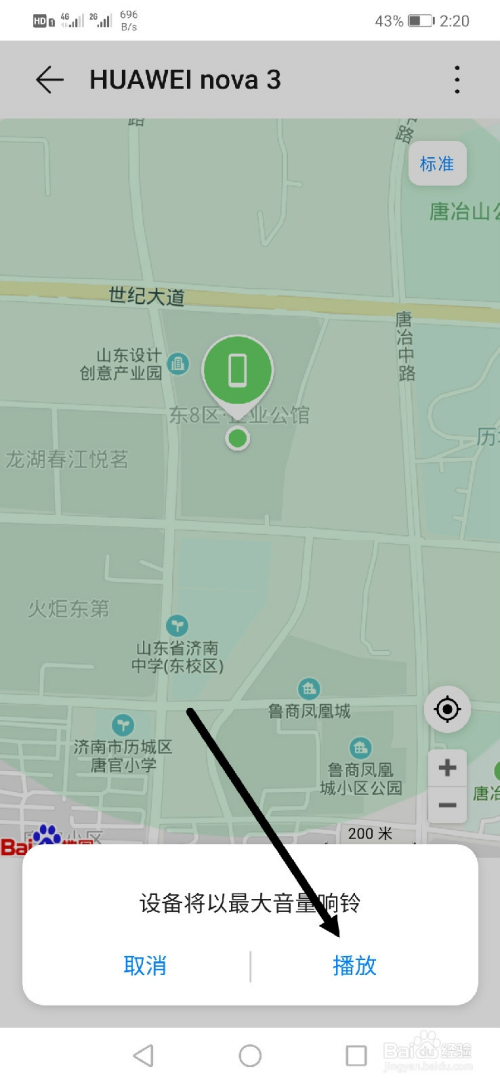 定位手机 、返回桌面打开适用东西、打开查找我的手机app并确认定位