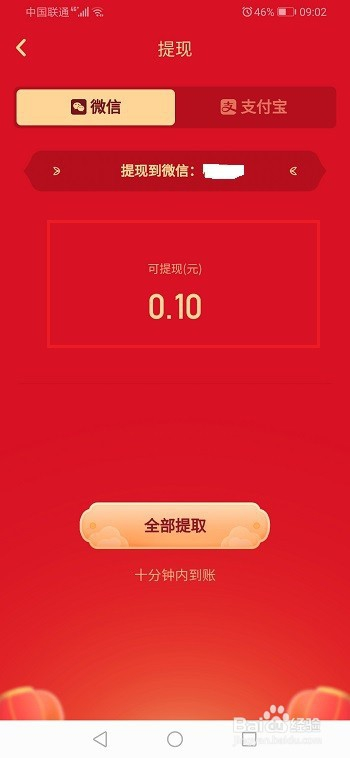 第五步若是还有没有提现的金额,可以进行提现到微信或者支付宝上,如下图所示: