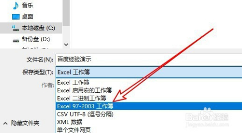 在弹出的下拉菜单中选择excel97-2003工作簿的菜单项。