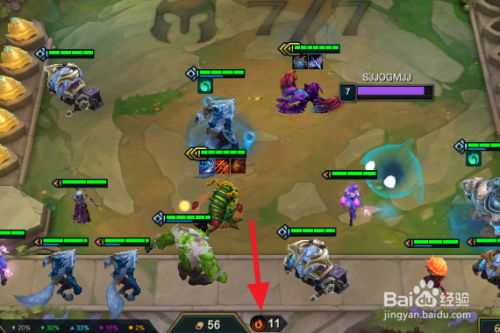 最终在九生齿的声势:大嘴、蝎子、狼人、阿木木、宝石、水晶拉克斯、炼金、蒙多、狗熊。构成了一个4水晶、3掠食者、2极地、3剧毒、2守护的羁绊声势。