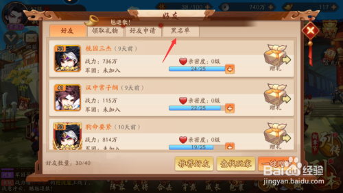 6、最后老友在黑名单了,我们可以点击解除恢复老友;
