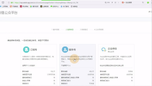 - 4资料填写后,点击确认领会订阅号、办事号和企业微信的区别后,选择想要的帐号类型