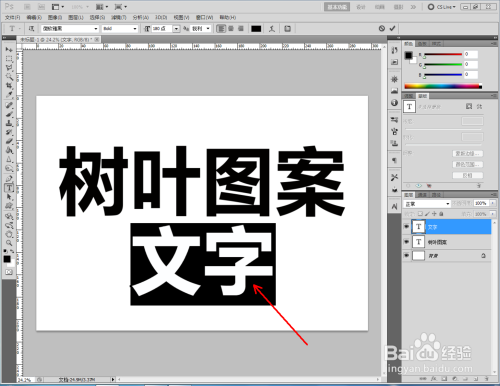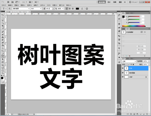 点击【文字东西】按图示设置好文字各参数后,完当作“树叶图案纸”和“文字”文字建造;