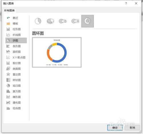 点击饼图,点击圆环图,然后点击确定。