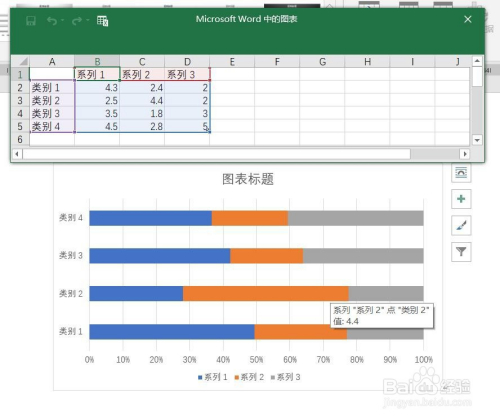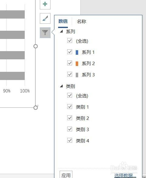 - Tips1、百分比聚积条形图的样式可以按照现实图表需要进行设置。