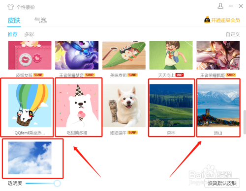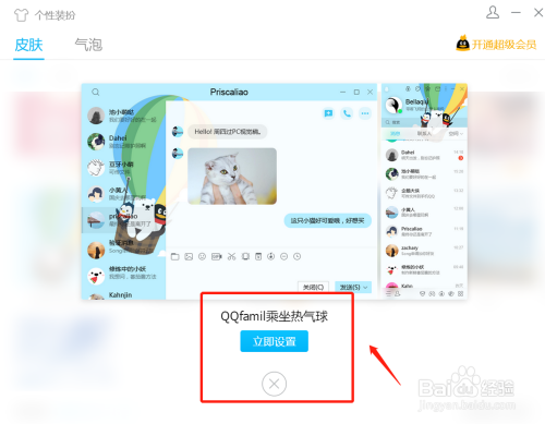 选择没有SVIP和VIP标记的图片,例如点击QQfamil乘坐热气球个性皮肤。