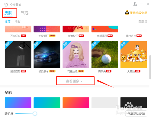 进入个性装扮页面,点击【皮肤】下方的【查看更多】。