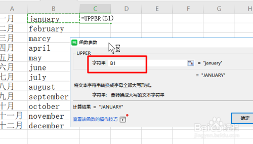 2、其次打开插入函数对话框找到upper函数,输入要进行转换字符串