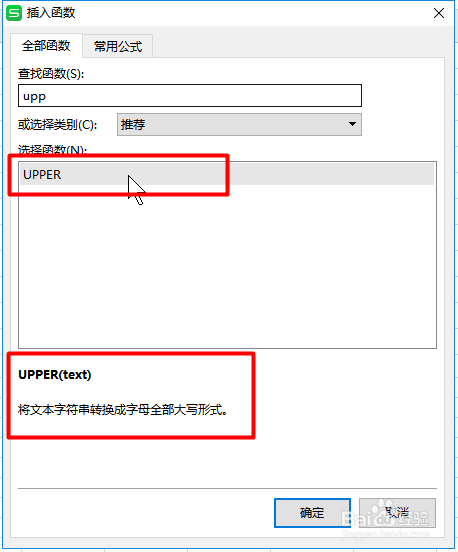 找到【upper】函数,即将文本字符串转换当作字母全数大写形式