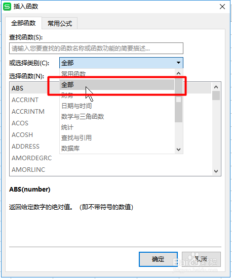 接着打开插入函数对话框,点击全数类别函数