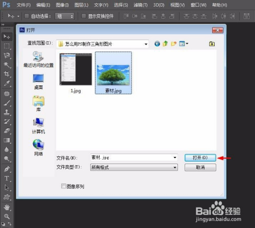 第一步:单击选择菜单栏中的“文件--打开”,选择一张要做当作三角形的图片并单击“打开”按钮。