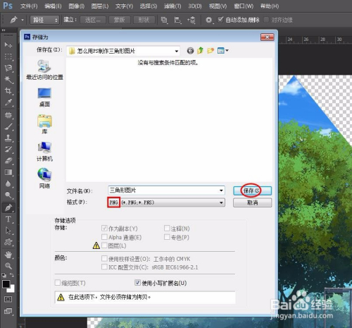 第八步:在格局中选择png格局,单击“保留”按钮,在接下来的对话框中,直接单击“确定”按钮,完当作操作。