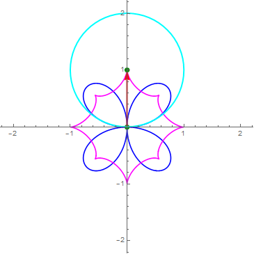 三叶玫瑰线的极坐标方程,加上一个正数,会“膨胀”起来: