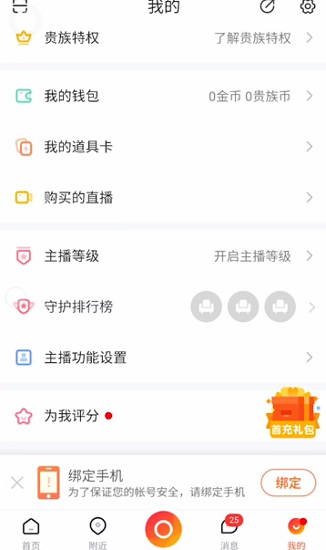 - 4点击“我的”即可进入小我本家儿页,点击“动静”可以看到所有接收到的信息互动,点击中心的圆圈可以倡议直播。