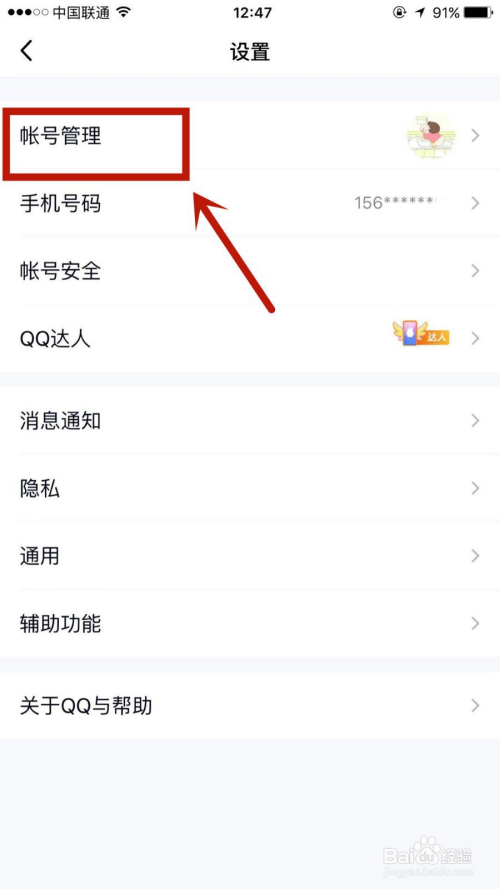 在设置页面,点击进入账号办理选项。