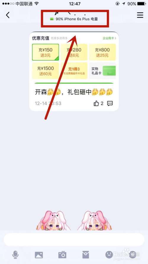 当作功操作后,进入聊天界面即可发实际时电量已经显示出来。