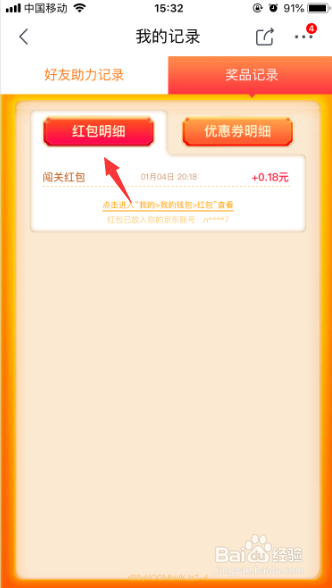 这里将可以查看到红包明细和优惠券明细。