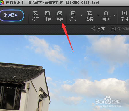 对编纂后的照片,选择另存为,进行保留,如图所示。